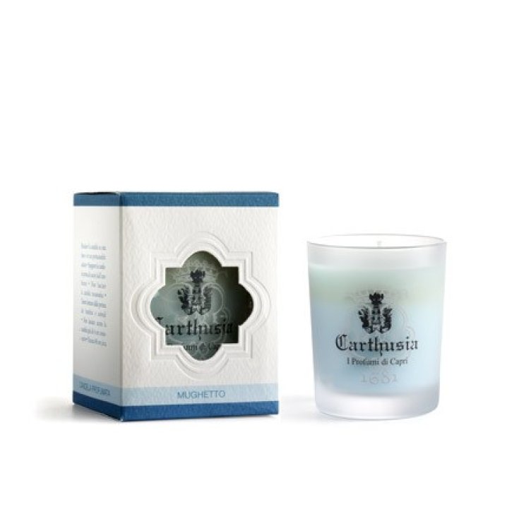 Ein sandgestrahltes Glas mit eingraviertem Carthusia-Logo enthält eine sehr duftende Kerze im Inneren, ideal, um jede Ecke des Hauses zu beduften. Vier Düfte für vier verschiedene Farben: Zitrone (Gelb), Maiglöckchen (Hellblau), Rose (Rosa), Vanille (Weiß). Jede Packung enthält, in der Schleife eingeschlossen, ein kleines Etui mit Streichhölzern zum Anzünden der Kerzen.